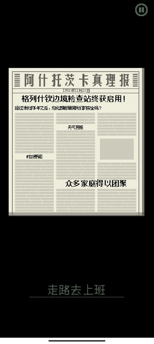 近期恐怖分子活动加剧,海关工作面临严峻考验。你需要管理市内热门俱乐部的进出人流,每个人都想进入,但你有权将可疑分子与醉汉拒之门外。游戏以六分钟为一天,对每位入境者进行证件审核;记录不良者拒绝盖章,合规者则予以放行。重复性的工作与整体背景设定,渲染出强烈的冷战氛围;你可以选择坚持革命理想,也可能因现实压力而动摇。