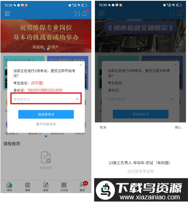 考试开始后,学员登录或刷新首页时,系统会弹出考试快捷入口;若同时存在多场考试,点击试卷下拉菜单会出现选择框,学员需自行选定对应试卷。