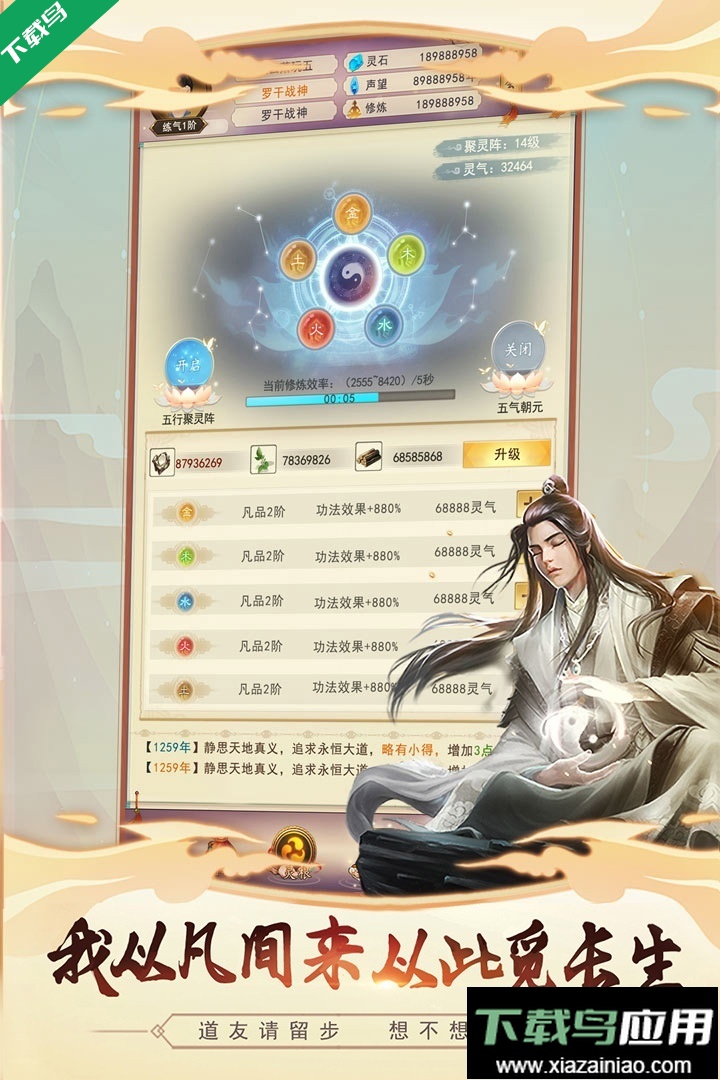 3、通过打坐修炼、经营洞府与不断升级来提升自身修为。