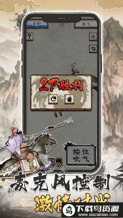 将经典的吹纸片对战玩法移植到手机平台,让你重温童年时光;挑选心仪的武将进入游戏,瞄准敌方方向,体验紧张刺激的即时对决;游戏流畅呈现武将迅捷翻腾的动作效果,生动再现刀光剑影的精彩场面。