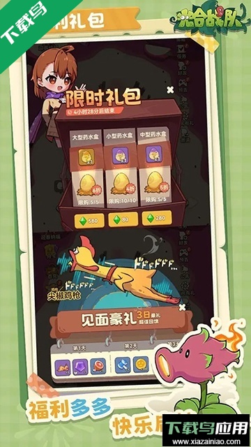 2、每次升级都会获得强化机会,可以选择新增植物伙伴加入战斗,或增强已有植物的能力;