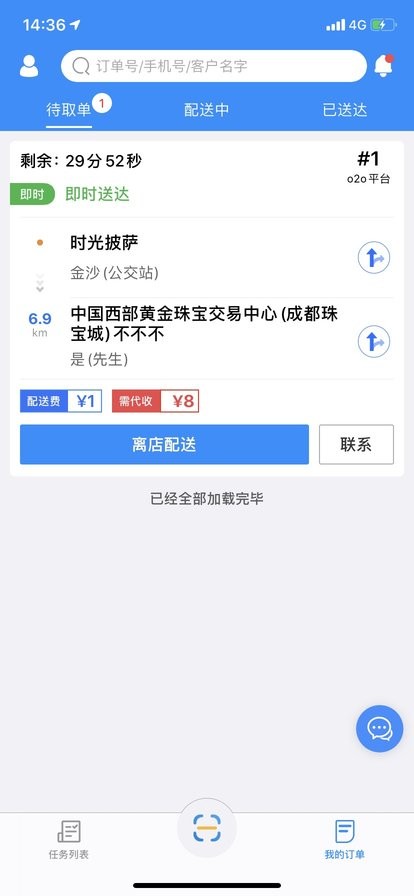 3、全部送单板块优化状态显示、电话搜索及订单列表排列;