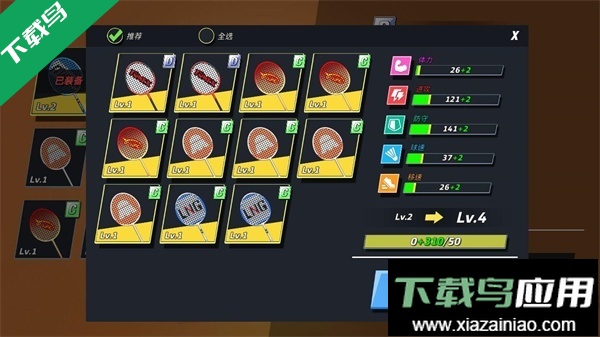 球拍升级主要通过消耗其他球拍提供的经验来完成,通常用低级球拍喂养高级球拍。