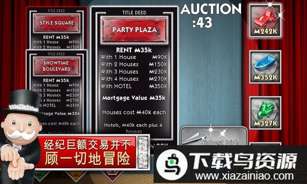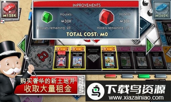 地产大亨monopoly已付费版是一款经典的经营模拟游戏,它还原了熟悉的棋盘对决体验。几位玩家通过投掷骰子来决定前进的步数,在格子上购买土地、建造房产,运用资本策略向对手收取租金,最终以雄厚的财力令其他竞争者破产。游戏在模拟商业竞争的同时也充满趣味互动,若你喜欢这类策略经营玩法,欢迎在本站下载体验。