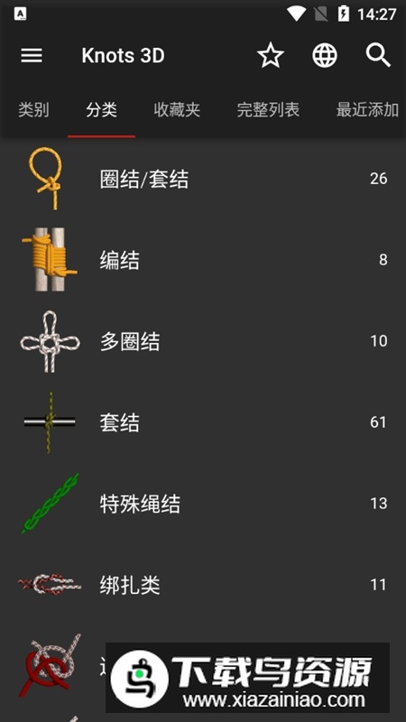 3、可按分类、标签或收藏进行浏览,也可查看全部绳结库;