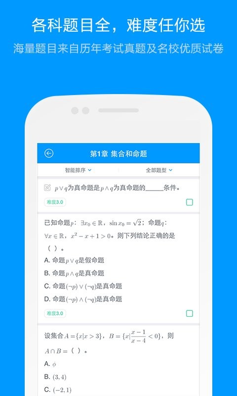 2.各科题目全,难度任你选:题目资源丰富,来源于历年考试真题及各地区名校优质试卷;