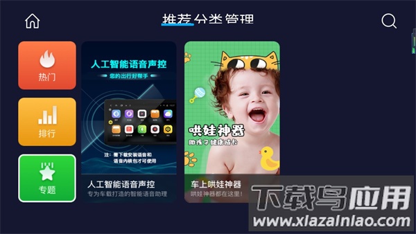 3、专题区聚合同类型应用,为用户拓展选择范围,推荐优质资源如车上哄娃工具、人工智能语音声控应用等;