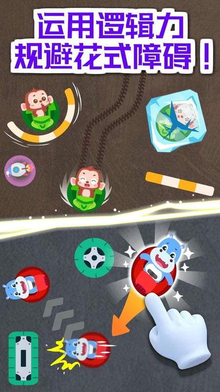 冰块困住了小伙伴,快驾驶碰碰车撞碎冰块实施营救;赛场上的轮胎和风扇会成为行驶阻碍,需要提前规划路线,灵活地避开这些障碍物;