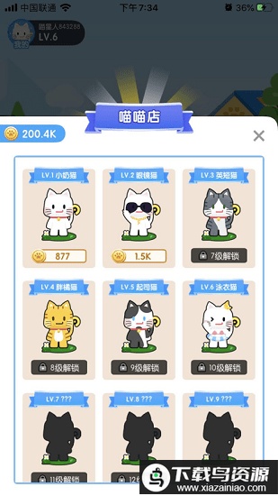 2、猫咪等级会随着合成不断提升,让你拥有更多样化的可爱猫宠;