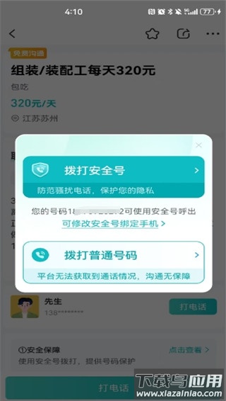 3、系统会提供安全号码或普通号码两种拨打方式,请根据您的需求选择。