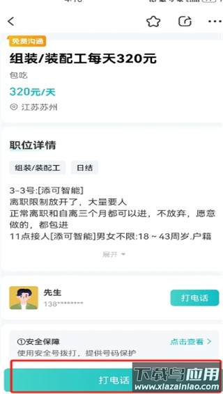2、进入该岗位的详细信息页面,找到并点击“打电话”功能键。