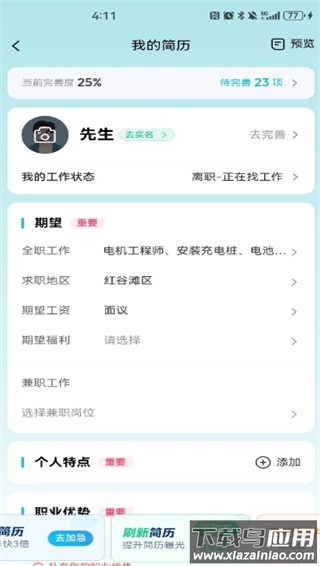 闪电直聘app怎么完善简历