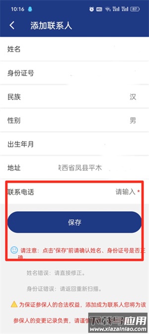 将亲友身份证正面放入取景框内完成扫描,随后补充联系电话并保存绑定。