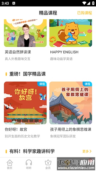 应用为三岁和五岁儿童提供了专属的音乐欣赏模块,内容库包含超过一万四千个资源,涵盖经典儿歌、英语启蒙、动画精选、国学诗词、成语故事、睡前故事及儿童绘本等原创与引进精品;欢迎下载体验,陪伴孩子踏上美妙的音乐启蒙之旅。