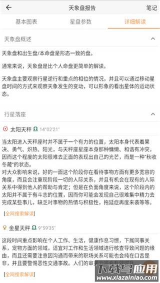 4、进入解读页面后,即可查阅针对个人星盘的详细文字分析。