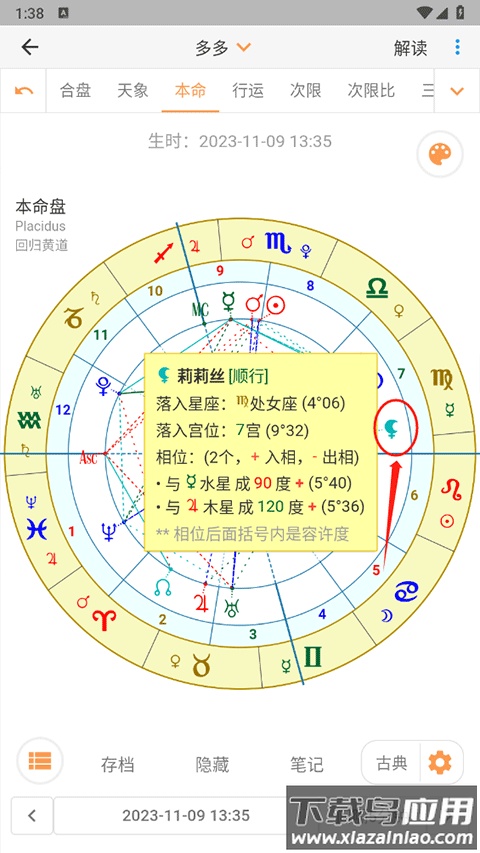 3、提供高效精准的解析:内置海量星盘解读资料库,汇集多家观点,帮助用户快速获取分析结果,提升排盘与解读效率;