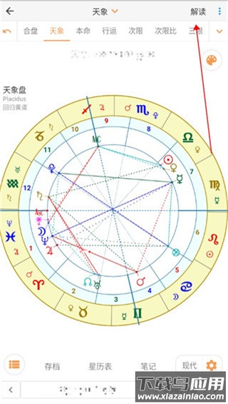 3、若对星盘符号感到陌生,可点击报告页面右上角的解读按钮;
