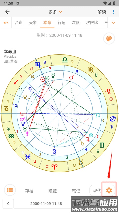 3、在星盘报告页面点击右下角的设置图标;