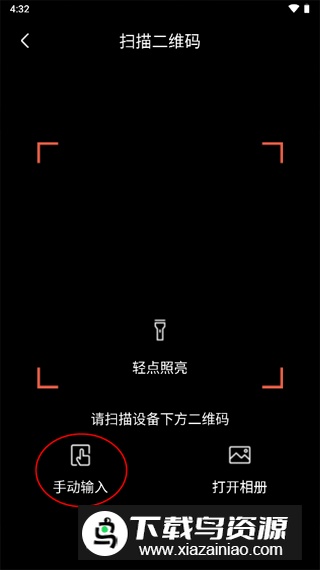 提供两种添加方式:扫描设备二维码或手动输入;此处选择手动输入。