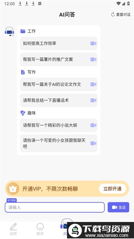 AI智能小助手最新版是一款融合前沿AI技术的创意辅助工具,它能够高效应对多种创作挑战,从智能问答到艺术生成皆可胜任。应用内置一键AI绘画功能,并支持根据用户想法定制各类文章与作品,让创意落地变得简单快捷;喜欢的就在本站下载。