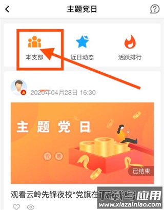 3. 在主题党日页面,点击泵支部选项;