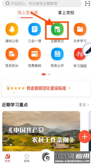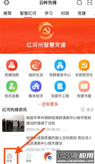 1. 打开应用后,点击下方导航栏中的党务板块进入;