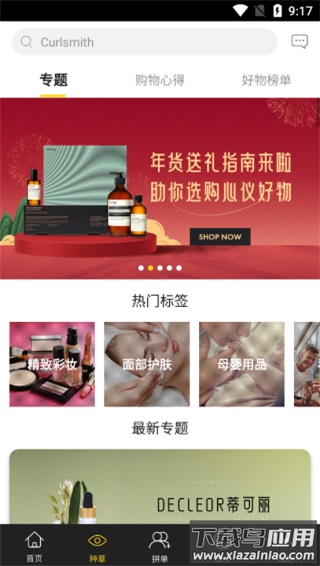 2、平台设有多个热门购物专题,例如面部护肤、精致彩妆等;