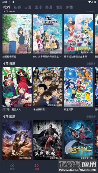 1、推荐板块内包含日漫、国漫以及新番等热门分类;