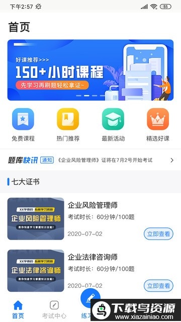 3、考试中心会清晰展示各类考试的安排与时间,提醒用户及时参与。