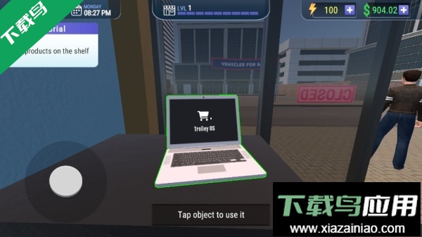 1、启动游戏后,使用虚拟摇杆控制角色移动,滑动屏幕可以转换视角;店内设有一台电脑用于采购设备。