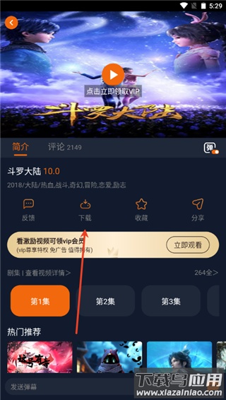 3、点击立即播放,进入播放页后选择下载功能即可开始缓存;