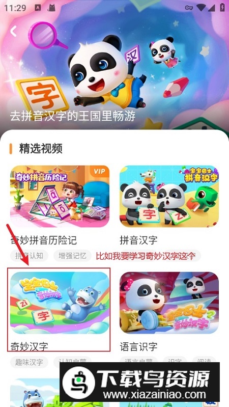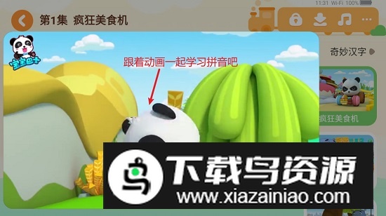 5. 播放视频,让孩子跟随动画内容一起快乐学习拼音。