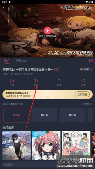 2、在播放页面中,点击下方下载按钮,选择需要下载的剧集;