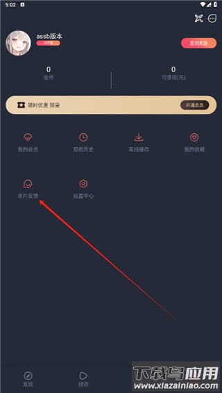 2、在我的板块内,找到并点击求片反馈功能;