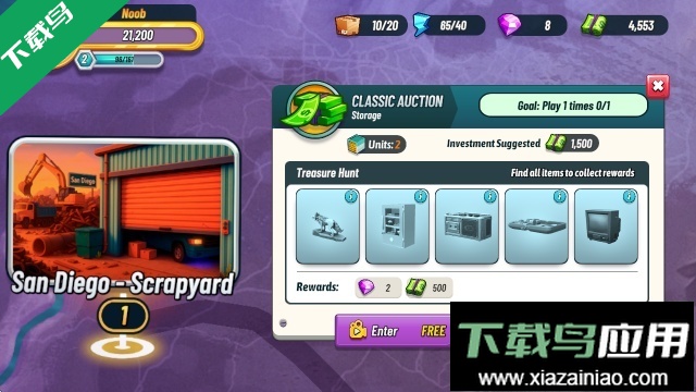 竞拍大战3是一款以拍卖为核心的模拟经营手游,玩家化身寻宝猎人与拍卖师,穿梭于全球多样的拍卖场景,体验紧张激烈的竞价博弈。游戏高度还原真实竞拍机制,强调策略判断与心理较量,让玩家感受以小博大的刺激乐趣。你需要准确评估物品价值,在与对手的周旋中果断出价,竞拍成功后通过转售获取收益,逐步构建属于自己的商业帝国,最终成为仓储拍卖领域的大亨。每场竞拍前,玩家可预览仓库内可能出现的商品类型,如古董、艺术品或稀有车辆,但具体内容与价值均为随机生成,确保每次体验都充满新鲜感;竞拍结束后,系统会对所有玩家的盈利情况与所得物品进行排名对比,清晰展示竞赛成果。