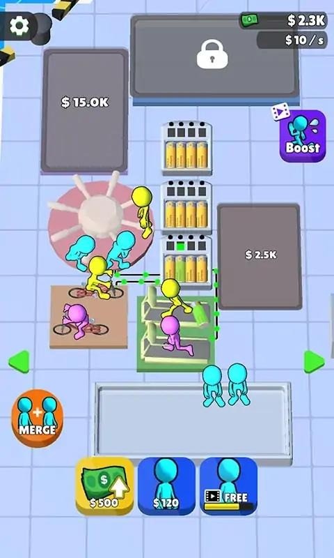 合并颜色相同的火柴人,创造出能力更强的员工。游戏操作简单且容易上手,充满持续成长的乐趣,适合喜欢放置经营类游戏的玩家体验。