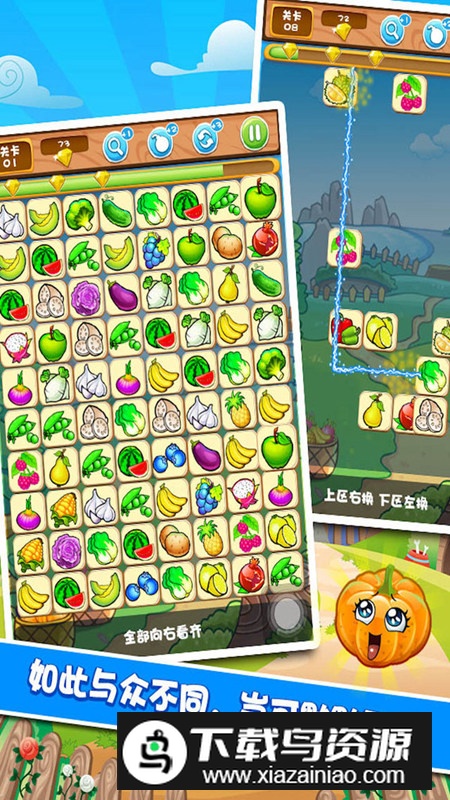 果蔬连连看3官方正版手机版将经典的连连看玩法与清新可爱的果蔬图案相结合,为玩家带来轻松又充满趣味的休闲体验。这款游戏曾吸引无数爱好者,其多样的模式与简洁的操作能让你快速沉浸其中,享受连接的乐趣。如果喜欢这类益智游戏,不妨在本站下载尝试。