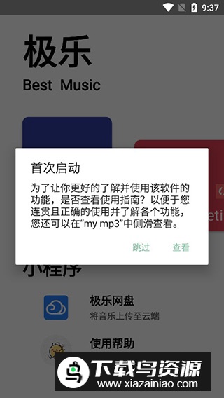 1、启动极乐音乐应用,首次进入时会显示基本操作指引;