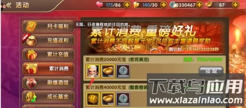 3、新增活动:①酒馆招募周;②幸运转盘周;③累计消费周:活动期间累计消费元宝可领取对应奖励;④黑市商店:每周神秘商人携带不同礼包上架,玩家可兑换珍稀物品;⑤每周登录:每日登录可获得登录奖励;