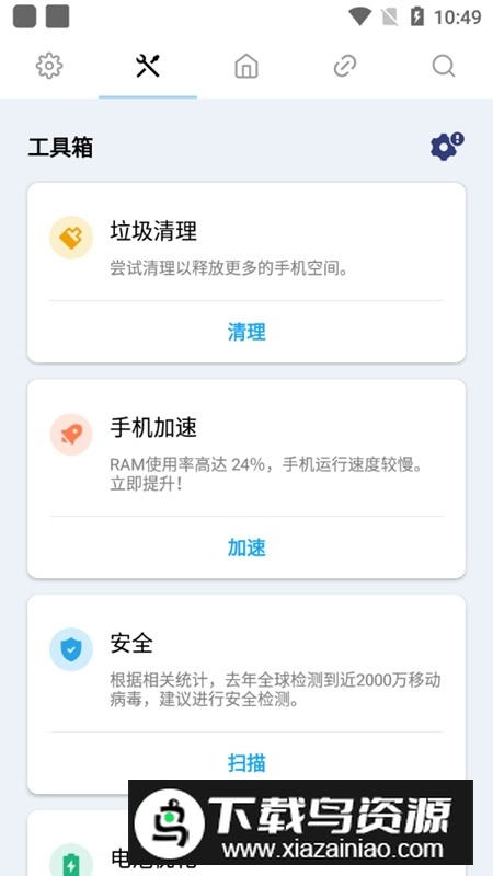 这款工具能协助用户迅速定位存储在设备中的各类文件;图片、视频、音频等文件会被自动分类并清晰排列为列表;它具备手机优化能力,既可浏览文件,也能清理系统中的冗余垃圾;轻松提升手机运行速度,辅助降低CPU温度,同时监控电池的消耗状态;提供全局搜索功能,支持在内部存储与SD卡中全面查找文件。