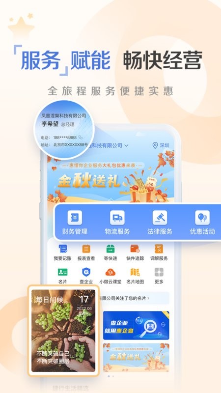 5.加入每日问候、我的名片及名片地图等企业社交服务;