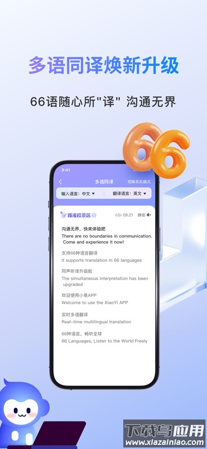 1)多语言实时翻译:目前已支持上百种常用语言,覆盖一带一路及G7国家等主要语种,适合留学、出境旅行、商务洽谈等跨语言场合。