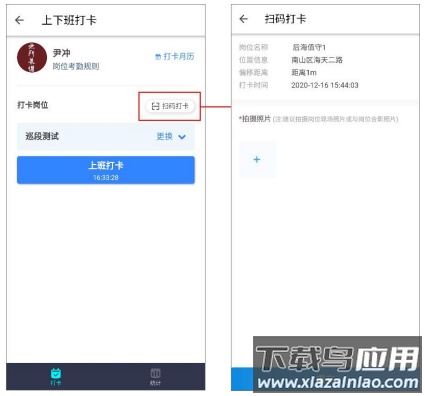 2、用户在“上下班打卡”页面点击“扫码打卡”,扫描已下载的岗位二维码;