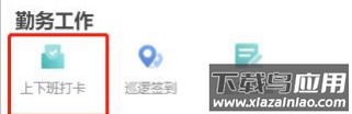 1、在app首页工作页点击“上下班打卡”;