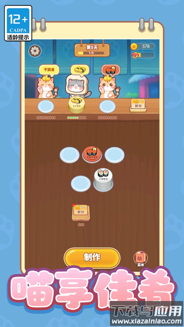 1、会有许多可爱的小猫来到你的小店,游戏的核心目标是满足它们对食物的渴望,这与普通的消除游戏很不一样,充满了治愈的感觉。
