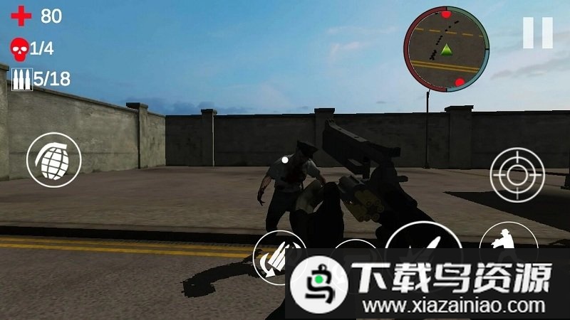 2. 操作采用虚拟摇杆与按键设计,灵活易上手,瞄准僵尸即可开火扫射。