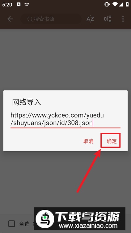 4、以【网络导入】为例,输入书源链接后确认即可。