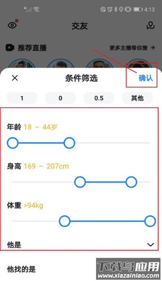 3、在筛选界面中按特定条件设置搜索范围,选择完毕后点击右上角“确定”即可开始查找;