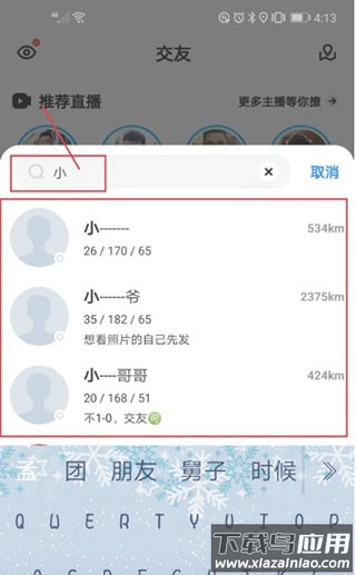 4、如需查找特定用户,可在顶部搜索框直接输入对方昵称,在结果列表中定位到目标后点击进入;