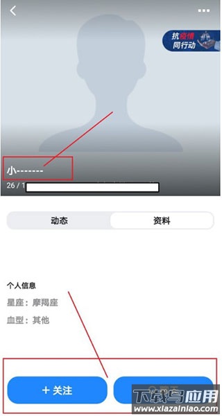 5、进入对应用户主页后,可通过底部功能按钮进行关注或发起聊天等操作。